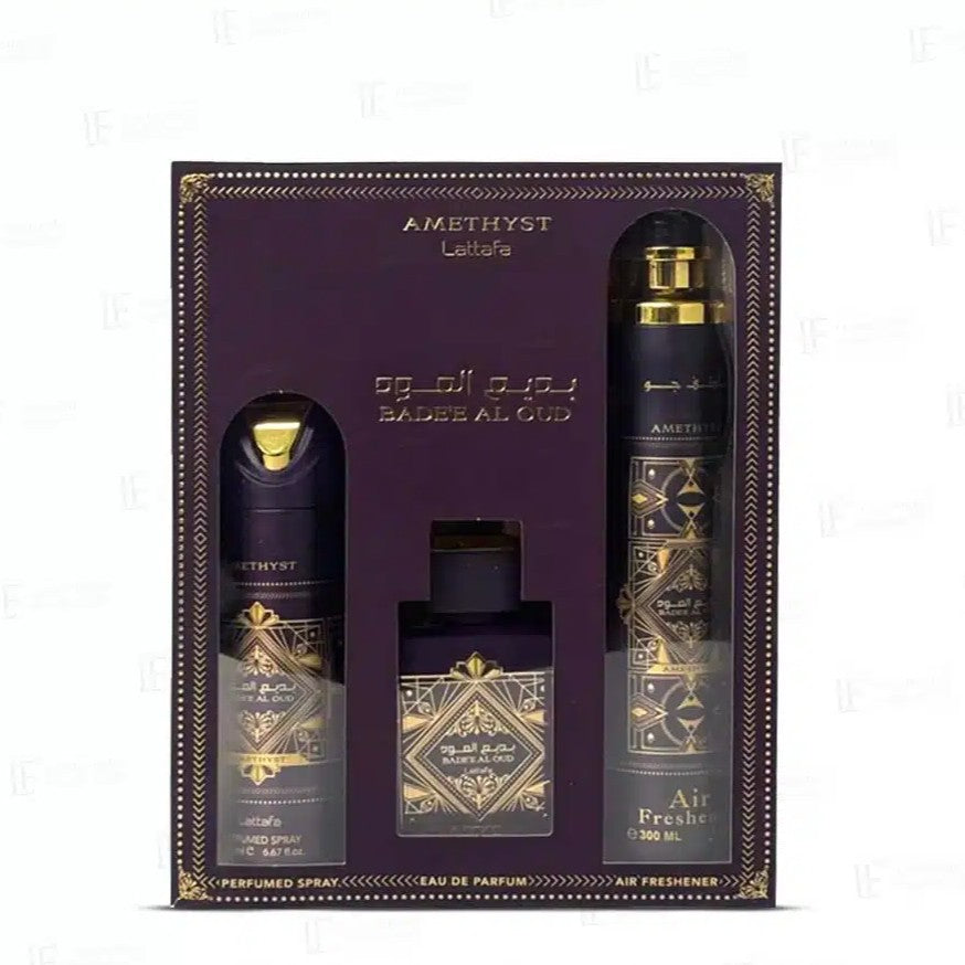 PACK BADE’E AL OUD AMETHYST – PERFUME, AMBIENTADOR Y DESODORANTE LATTAFA