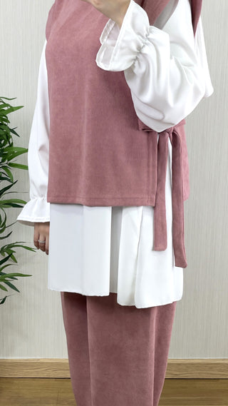 ¡Con el CONJUNTO LARA 3 PIEZAS ROSA tendrás un look completo y cómodo! Incluye pantalón, camisa y parte superior. Este conjunto destaca por su suavidad y comodidad gracias a la alta calidad de la tela utilizada.