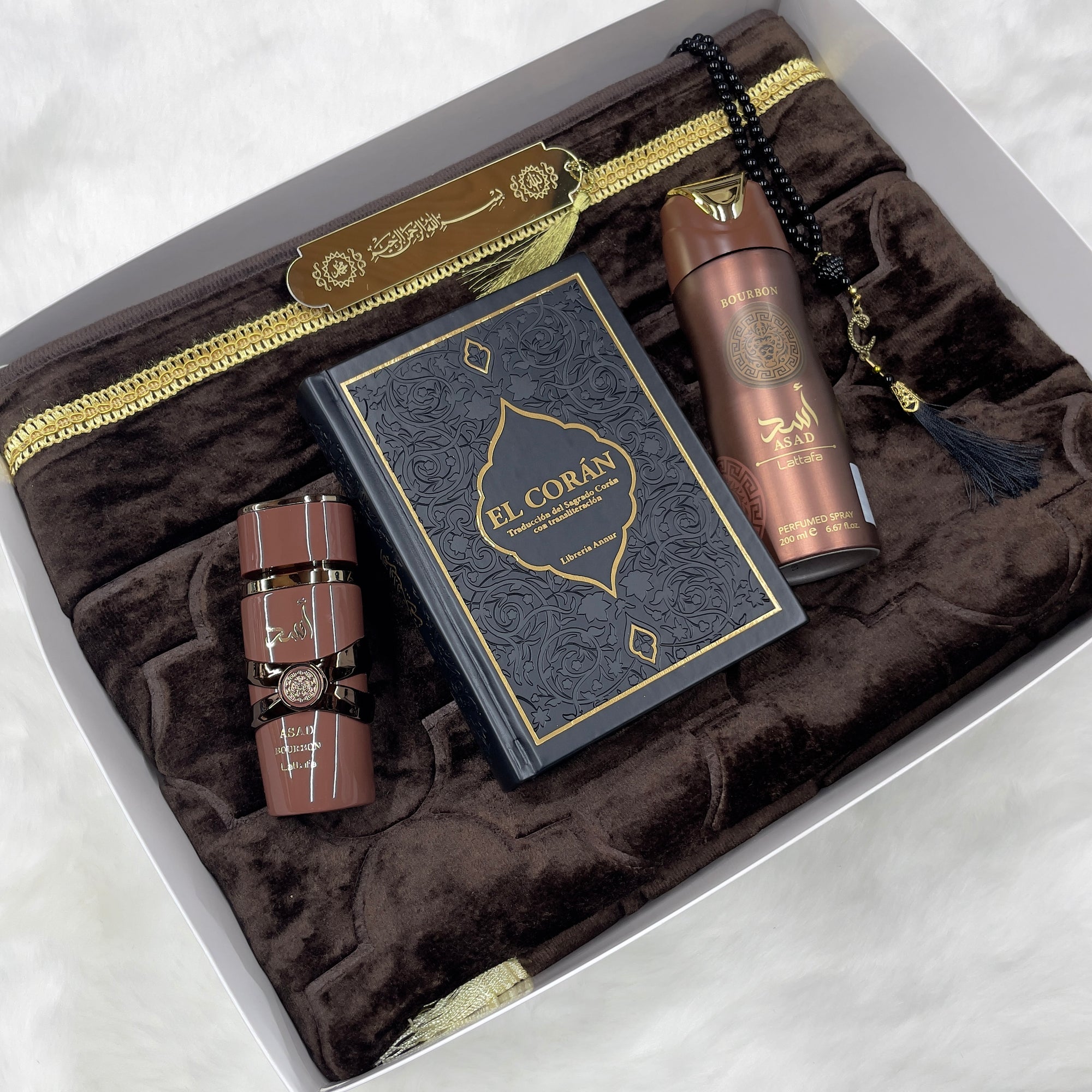 El Pack Ramadán Asad combina todo lo esencial para vivir este mes sagrado con estilo, presencia y significado. Un set completo que une oración, cuidado personal y fragancias orientales intensas, perfecto para uso diario o como regalo especial.