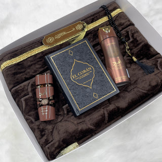 Todo presentado en una caja de regalo luxury, lista para sorprender en Ramadán o Eid.