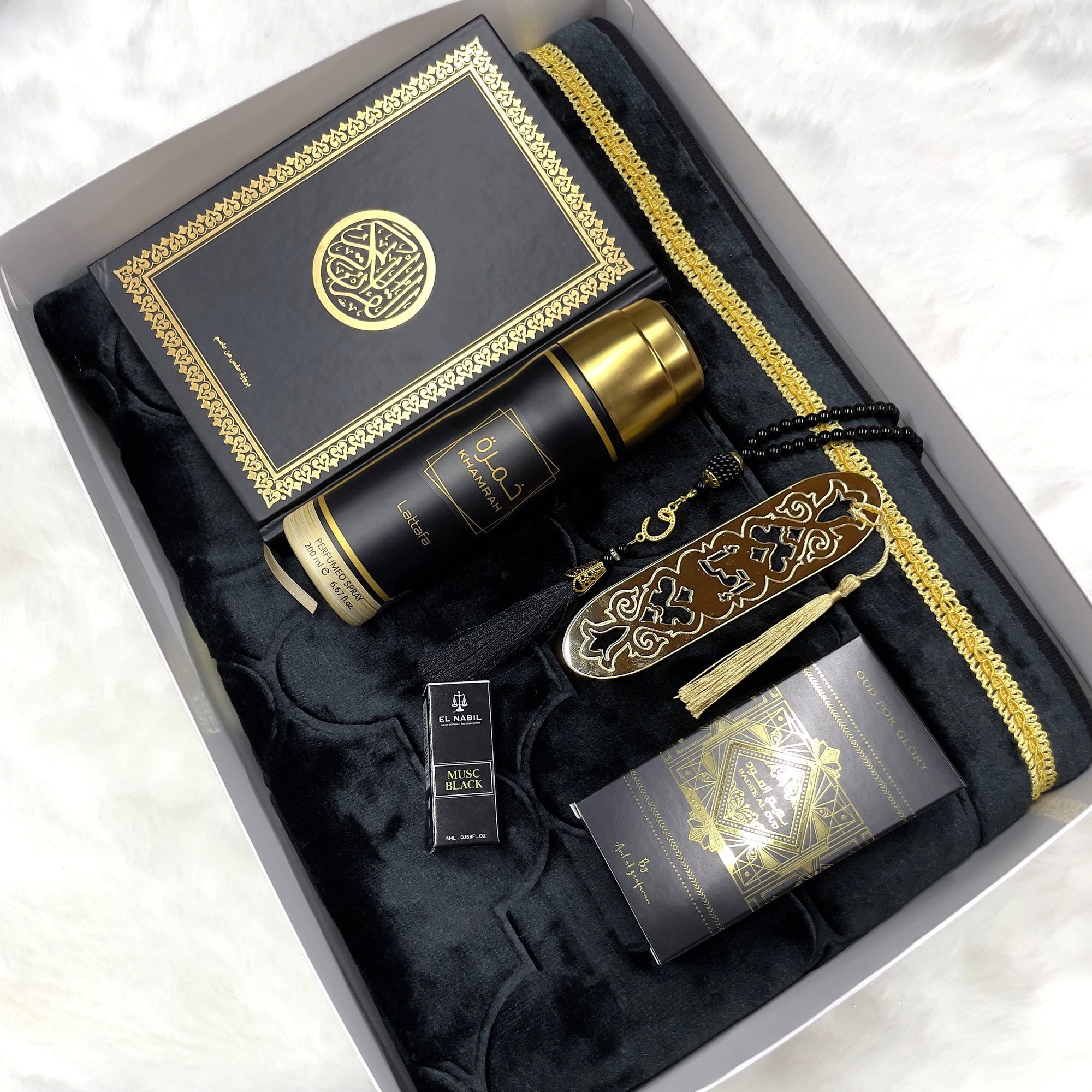 El Pack Medina Negro es la elección perfecta para quienes desean un regalo islámico premium, completo y elegante. Su combinación de artículos cuidadosamente seleccionados lo convierte en una opción ideal para Ramadán, Eid, shahada, bodas o cualquier ocasión especial.