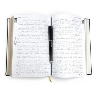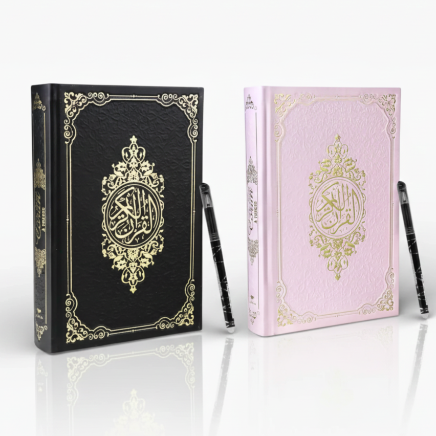 Gracias a su sistema de trazado guiado, el lector puede repasar y escribir los versículos del Corán directamente sobre el libro, reforzando la lectura, la caligrafía árabe y la conexión con el texto sagrado.
