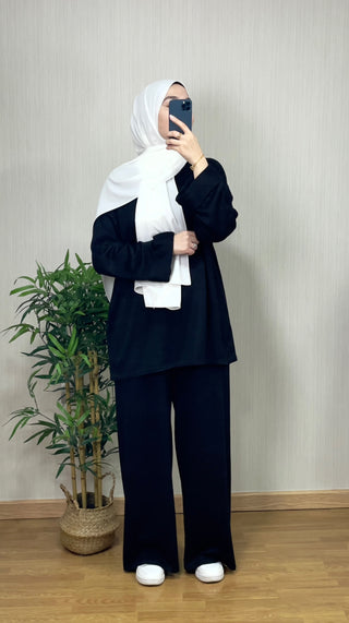 Déjate envolver por la elegancia del CONJUNTO LANA NEGRO. Confeccionado con una tela suave y ligera de alta calidad, este conjunto es práctico para las temporadas de otoño e invierno. Perfecto para el día a día, te sentirás elegante y cómoda al mismo tiempo.