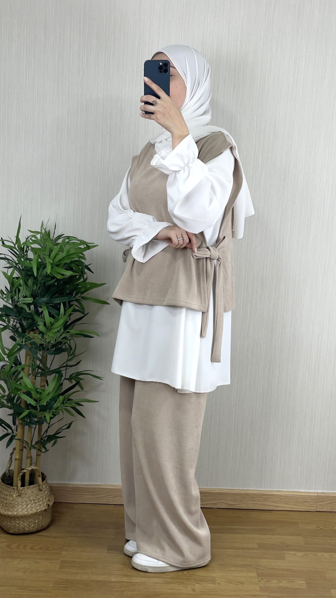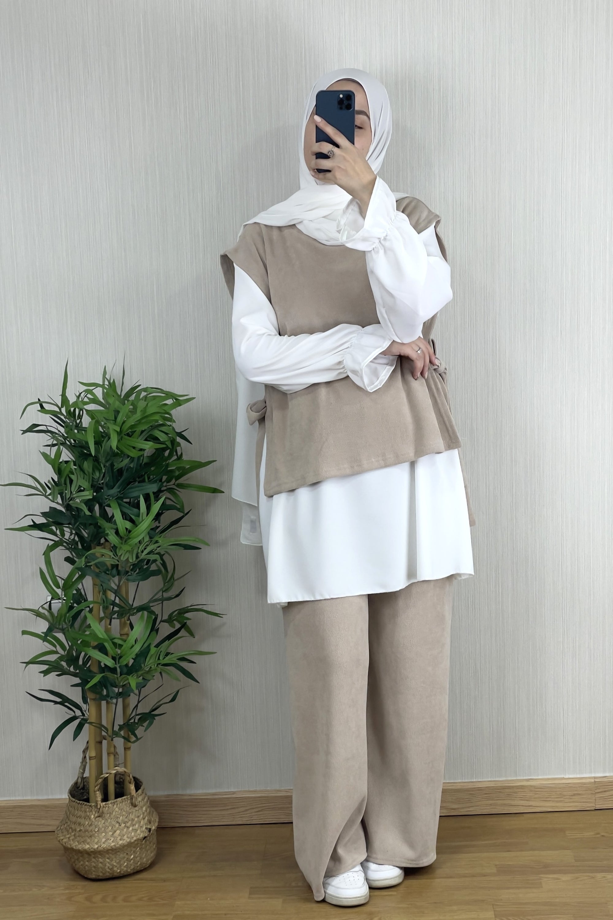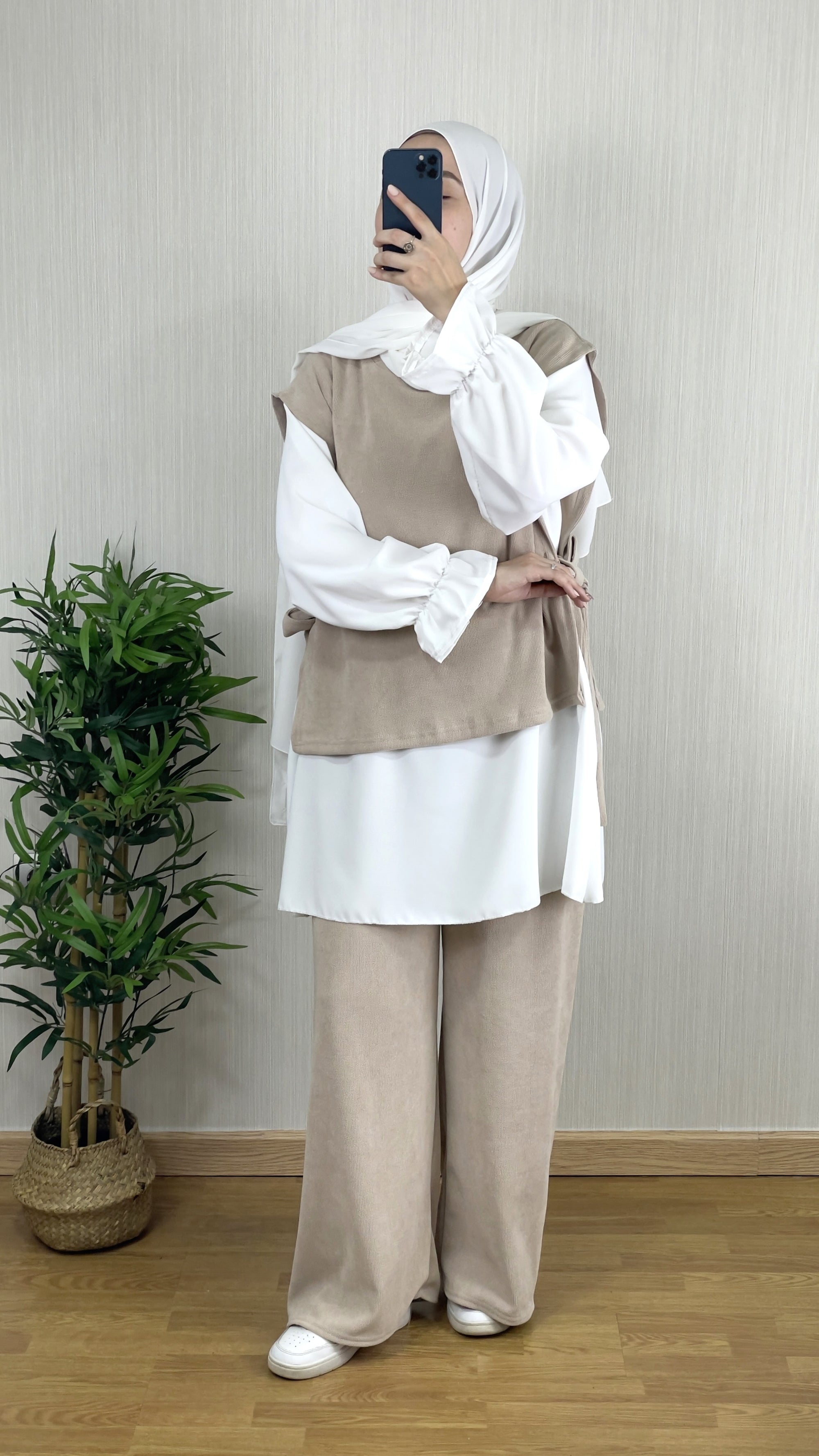 ¡Con el CONJUNTO LARA 3 PIEZAS BEIGE tendrás un look completo y cómodo! Incluye pantalón, camisa y parte superior. Este conjunto destaca por su suavidad y comodidad gracias a la alta calidad de la tela utilizada.