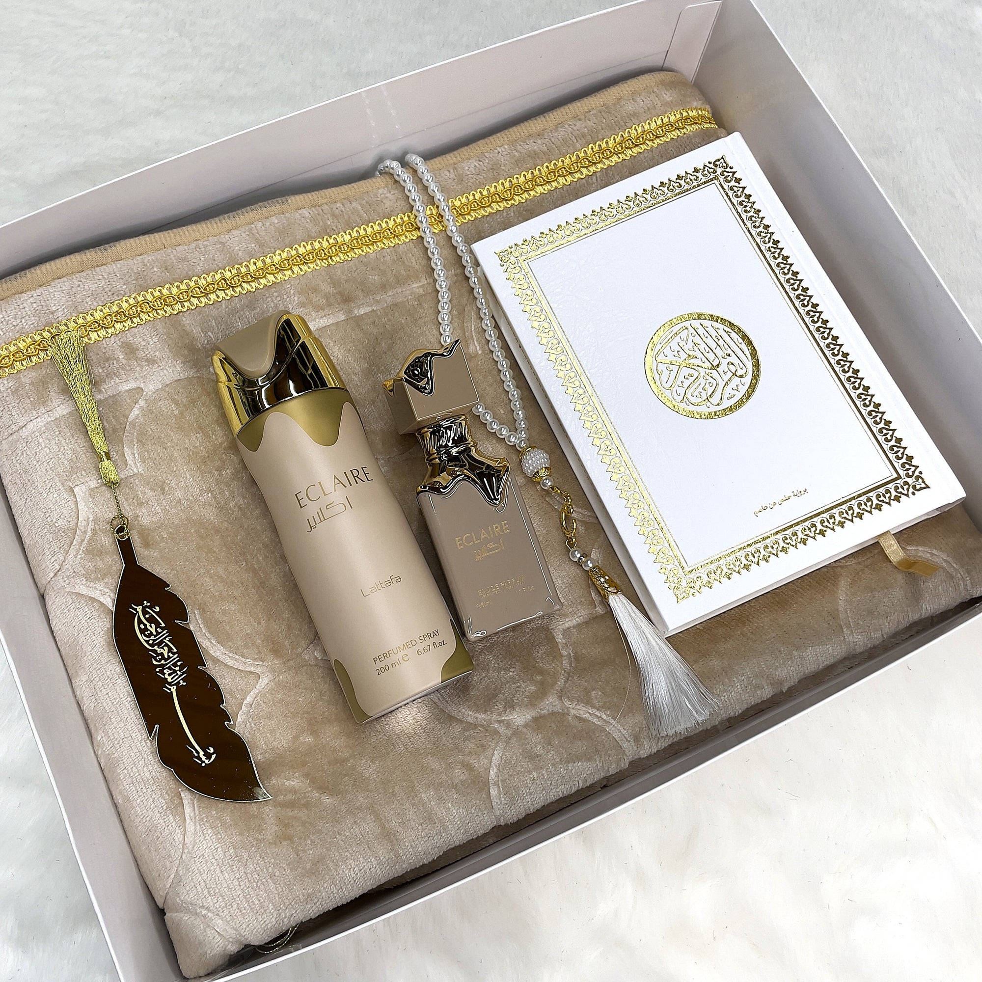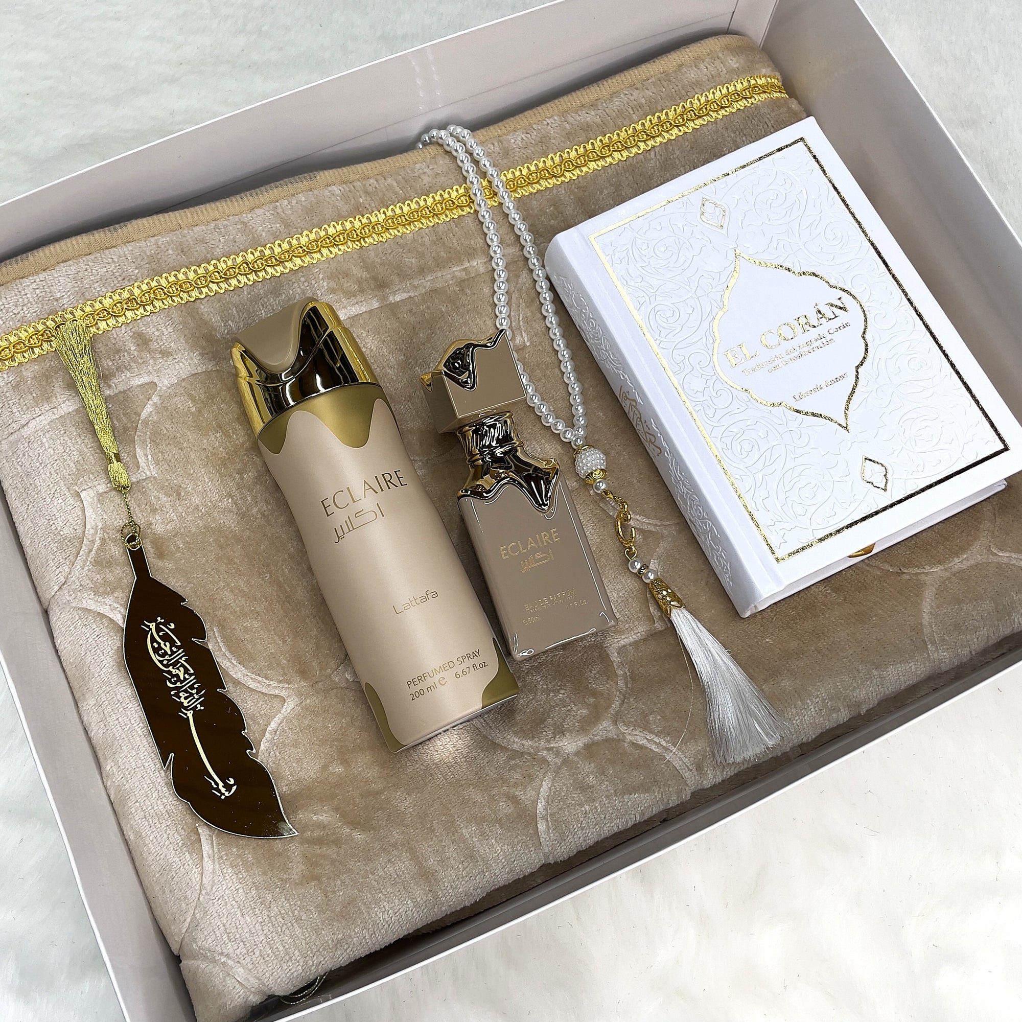 El aroma dulce y elegante de Eclaire aporta una sensación de calma y bienestar, mientras que los elementos religiosos acompañan la práctica diaria durante el mes sagrado. Este pack es perfecto para Ramadán, Eid al-Fitr, Shahada o regalos especiales.