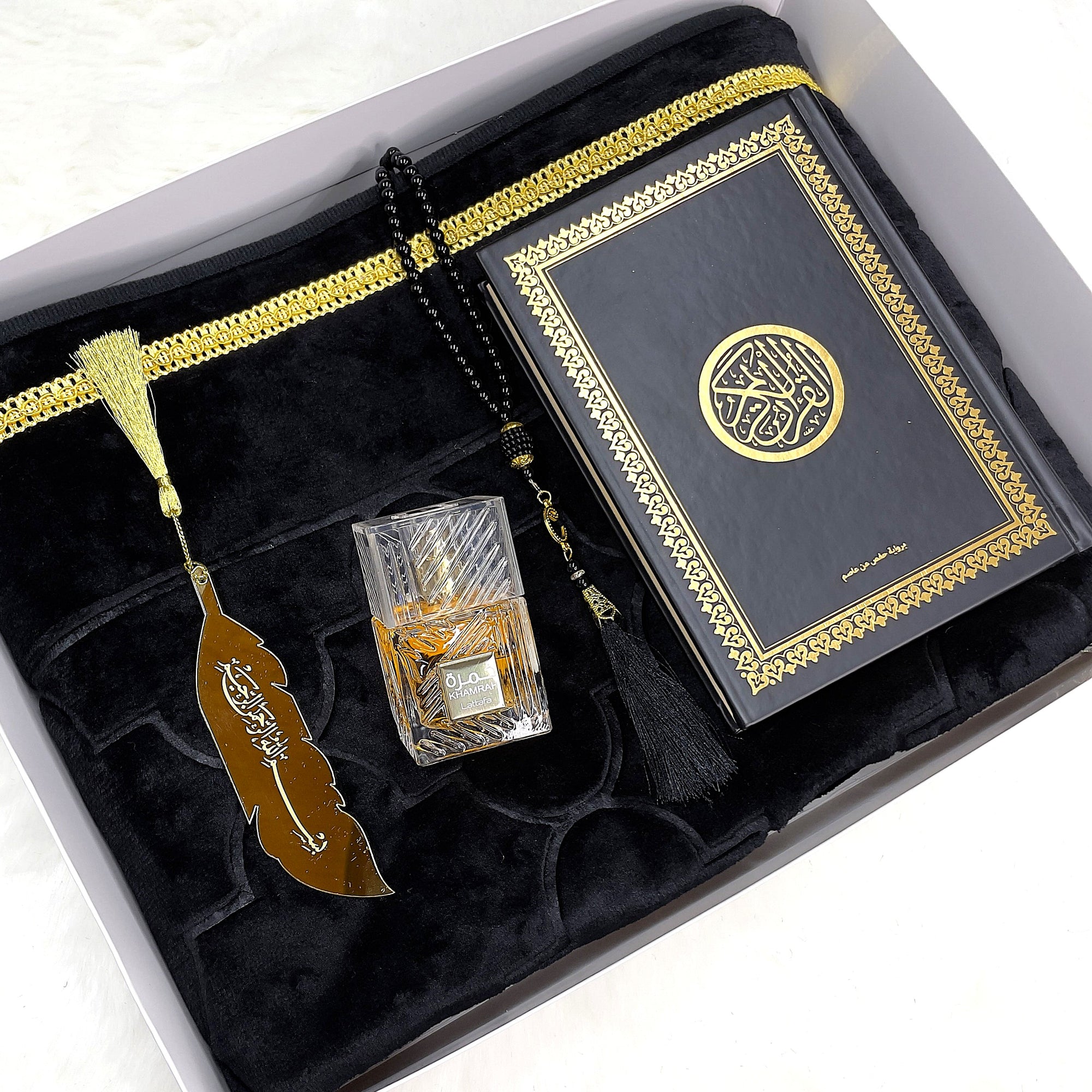 El Pack Khamra Ramadán ha sido cuidadosamente diseñado para ofrecer un regalo islámico elegante, completo y lleno de significado durante el mes sagrado de Ramadán. Combina espiritualidad, aroma y presentación premium, convirtiéndolo en una opción ideal para regalar o para uso personal.